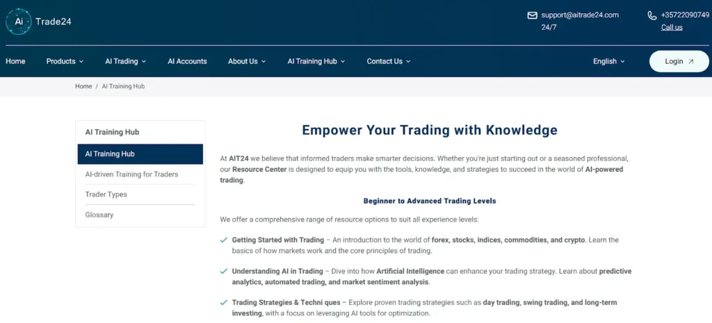 This Aitrade24.com review explains how AITrade24’s training hub offers learning materials to support different levels of trading experience.
